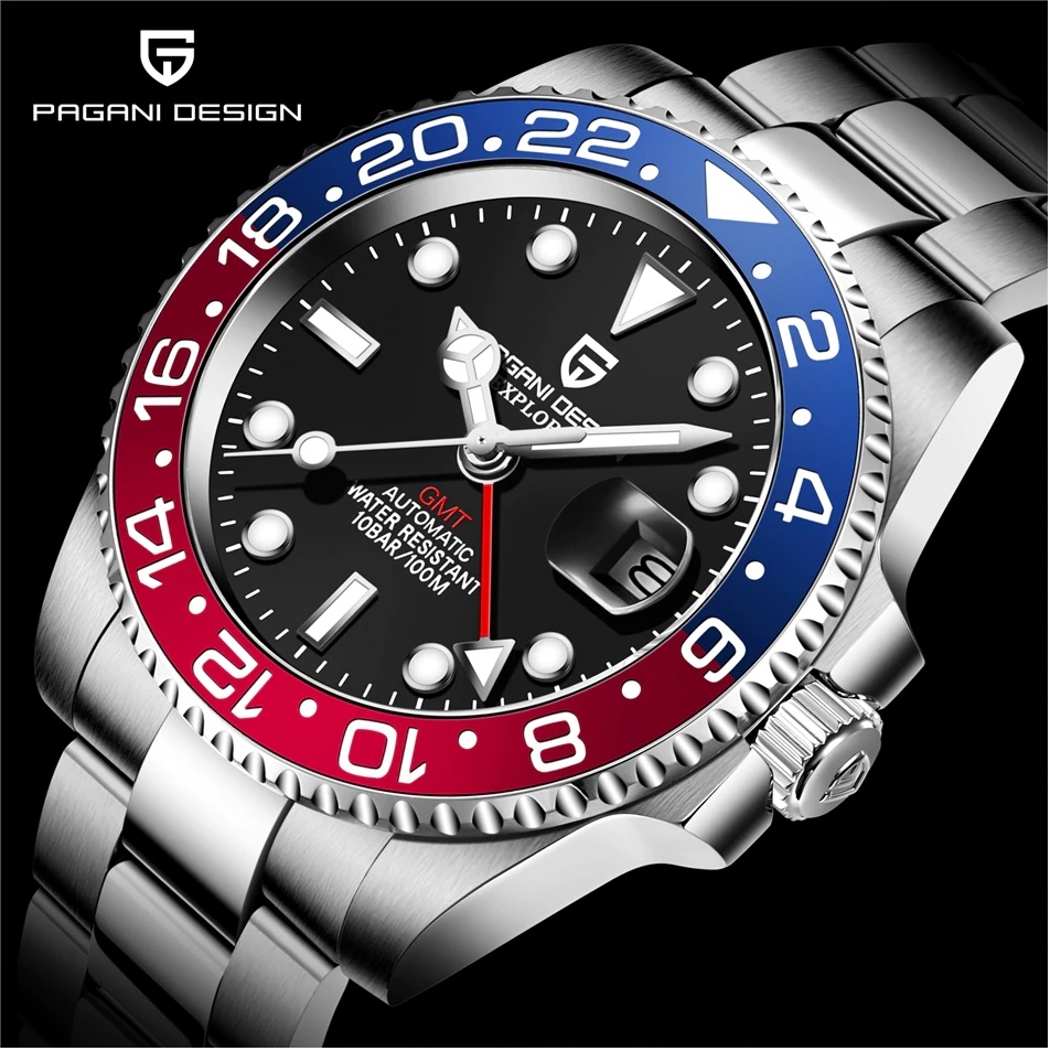 - Functions: Central hours; central minutes; central sweeping seconds; date at 3:00; 24 hour GMT wheel at 6:00